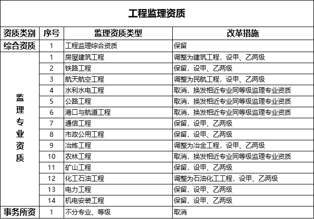 监理资质34项,压减为21项