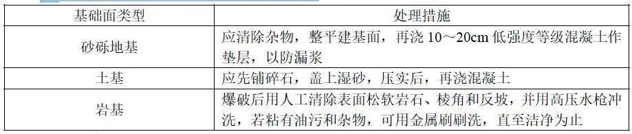 35.混凝土浇筑前基础面的处理措施有哪些?