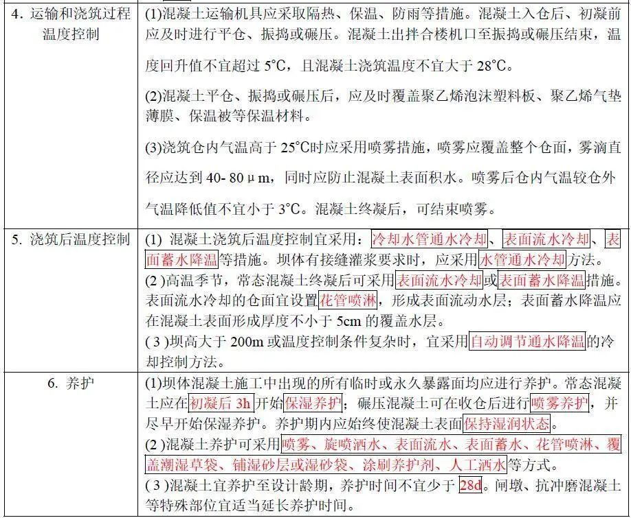 通常采用洒水养护或安管喷雾。养护时间与浇筑结构特征和水泥发热特征有关。正常养护2-3周,有时更长。对于已经拆模的混凝土表面,应用草垫等覆盖。