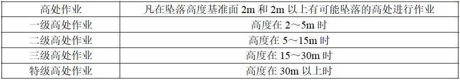 高处作业、带电高处作业、悬空高处作业、抢救高处作业。