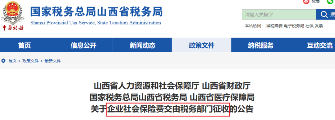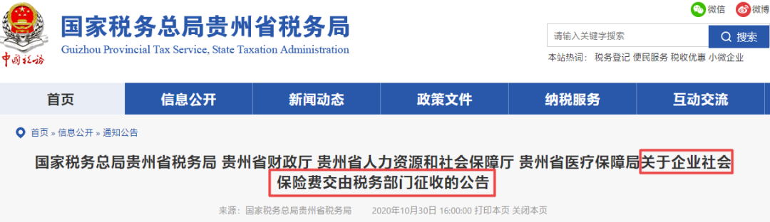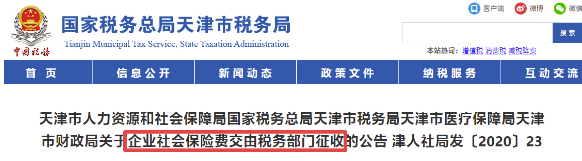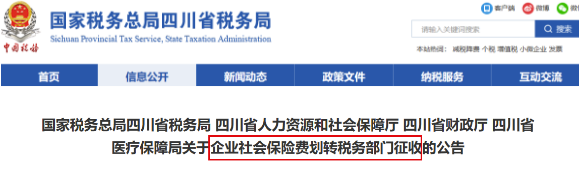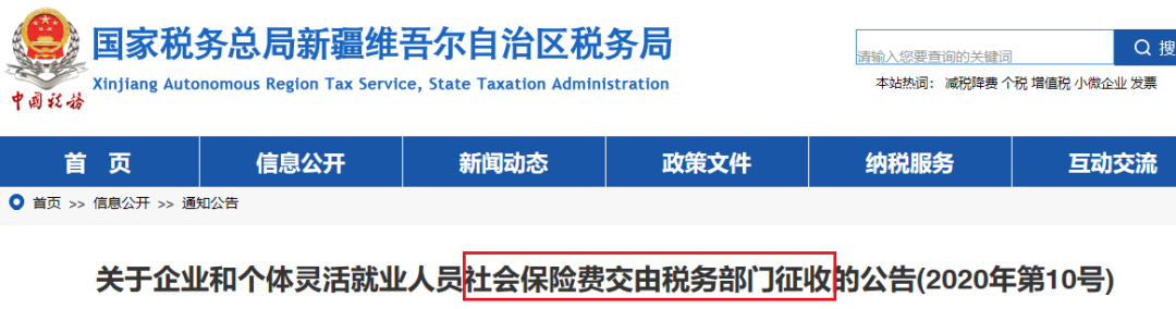 自2020年11月起,社会保险费交由税务部门统一征收!全国“一盘棋”!除部分已实施地区外,目前有以下地区集体行动、统一通知: