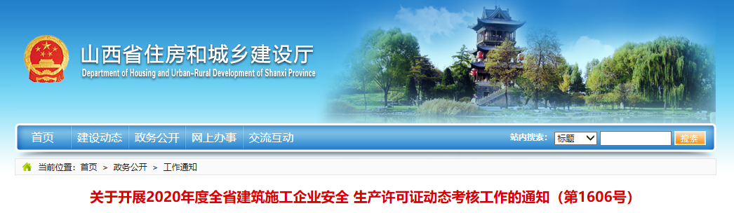 为加强我省建筑施工企业安全管理,根据住房和城乡建设部《建筑施工企业安全生产许可证动态监管暂行办法》(建质〔2008〕121号)、《山西省〈建筑施工企业安全生产许可证管理规定〉实施意见的通知》(晋建建字〔2004〕288号)等有关规定,决定开展2020年度全省建筑施工企业安全生产许可证动态考核。现将有关事项通知如下: