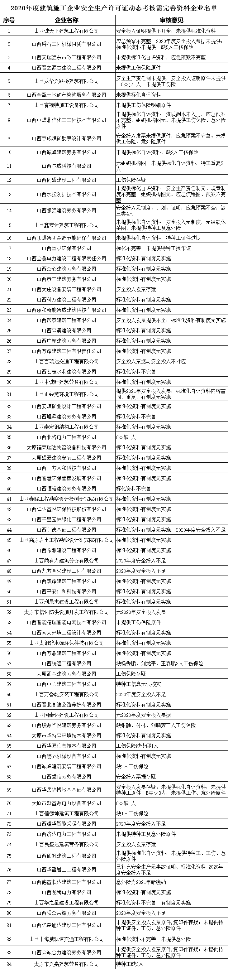 关于公布2020年度建筑施工企业安全生产许可证动态考核申述补正审查意见的通知