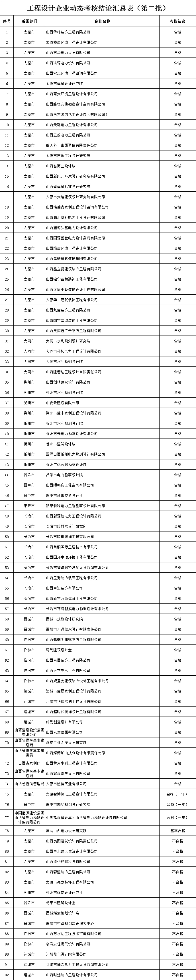 附件二:工程设计企业动态考核结论汇总表(第二批)