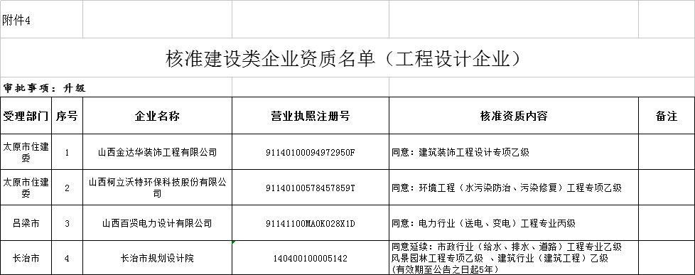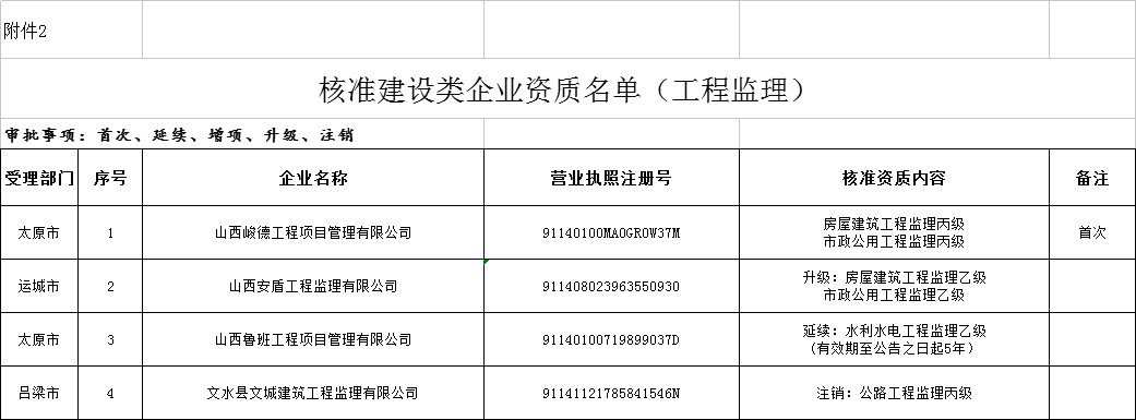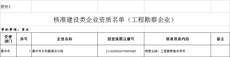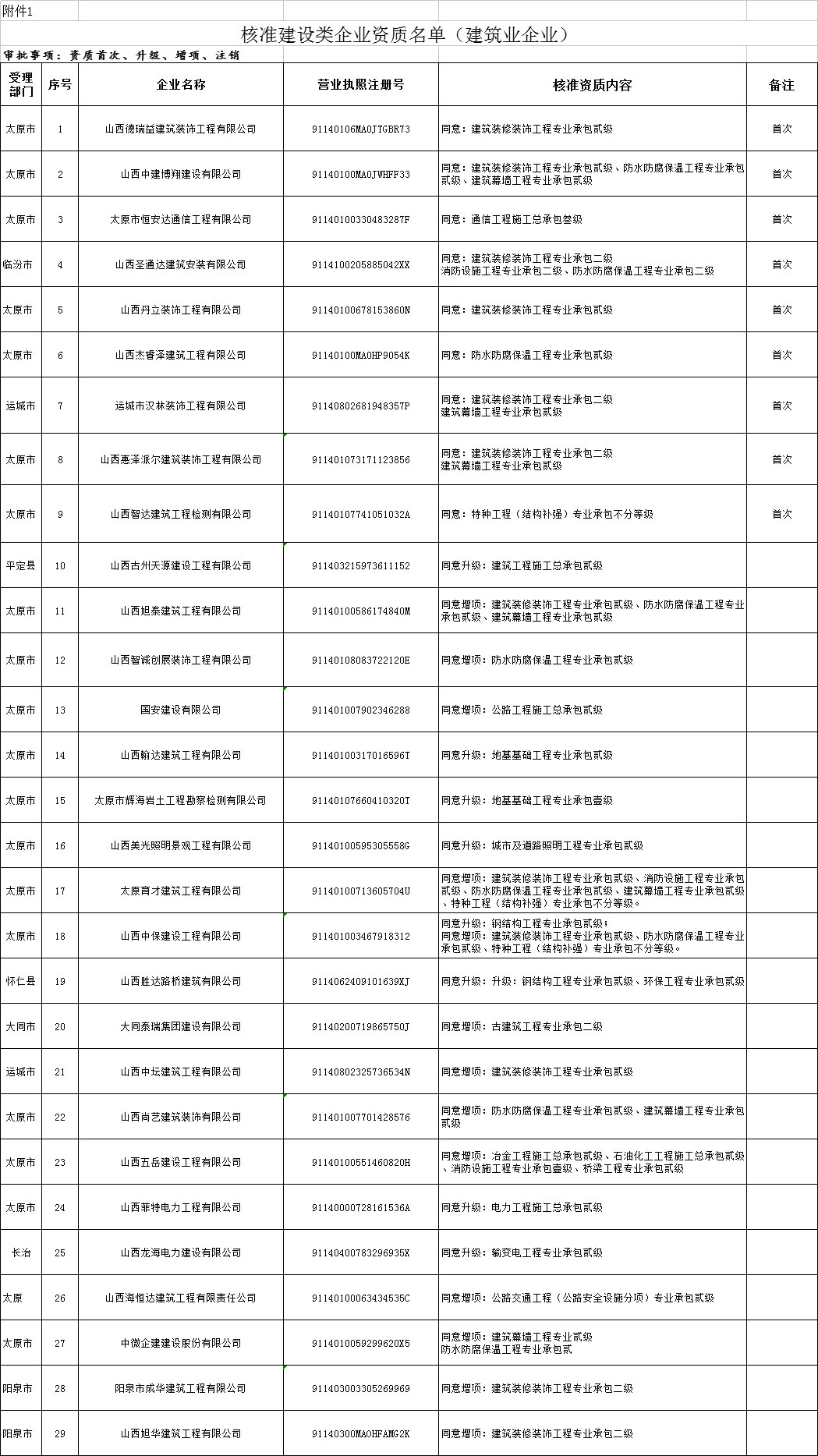 根据《建筑法》、《行政许可法》、《建筑业企业资质管理规定》(住房和城乡建设部第22号令)、《工程监理企业资质管理规定》(建设部令第158号)、《工程勘察设计企业资质管理规定》(建设部令第160号)等有关规定,现将经我厅依法审查核准的建设类企业资质(共38家)予以公布(见附件)。